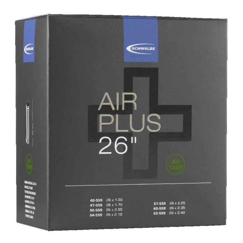 - besserer Pannenschutz: Dank seiner rund 70% höheren Wandstärke ist der Schwalbe Air Plus Schlauch besonders robust – und damit überdurchschnittlich gut gegen Durchstiche und Durchschläge geschützt.